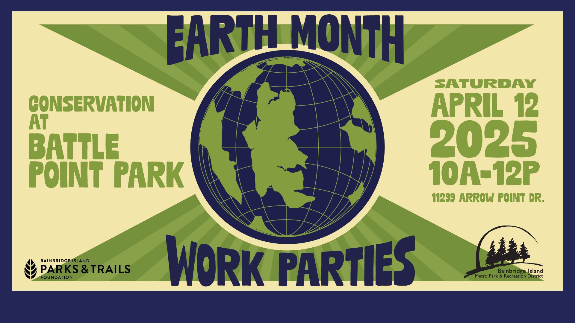 Join the Park District and our partners for the first Saturday of volunteering at Battle Point Park this Earth Month to remove invasives such as English Ivy, Himalayan Blackberry, and Scotch Broom.